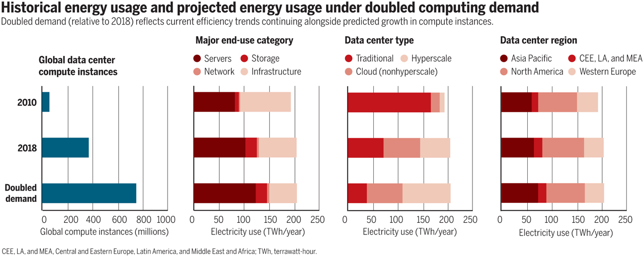 报告显示,2018年数据中心的总用电量约为205太瓦时,约占全球用电总量的1%(该领域通常引用的统计值为2%,可以看出数据中心实际耗能远低于此)。205太瓦时的功耗相较于2010年的数值增长了6%,但是同一时期全球数据处理中心计算量却增加了550%。更确切地说,在计算量大幅增加的同时,能耗基本保持了稳定。 文中列举了许多原因。首先,硬件电源效率得到了极大的提高。数据处理向虚拟服务器端迁移,这使得在仅6%的能耗增长下,计算量增加了6倍。得益于更快、更节能的端口技术,虽然数据中心的IP流量增长了10倍,但是网络设备的能耗增长却十分有限。 该报告还指出,超大规模数据中心技术的兴起和使用也帮助减少了能耗。超大型数据中心和云数据中心通常比企业数据中心具有更高的能源效率,因为高效的能源利用对于它们更为重要。像亚马逊、微软、谷歌这样的公司,在处理数据方面需要的电能越少,利润空间就会越大。超大规模数据中心非常注重使用更为便宜的大量可再生能源,如水电和风能。 因此,如果某个公司将本身效率低下的老旧数据中心换成AWS(亚马逊网络服务)或者Google Cloud(谷歌云),那么整个数据中心的总功耗将会下降。 https://www.fx361.com/page/2020/0503/6626362.shtml