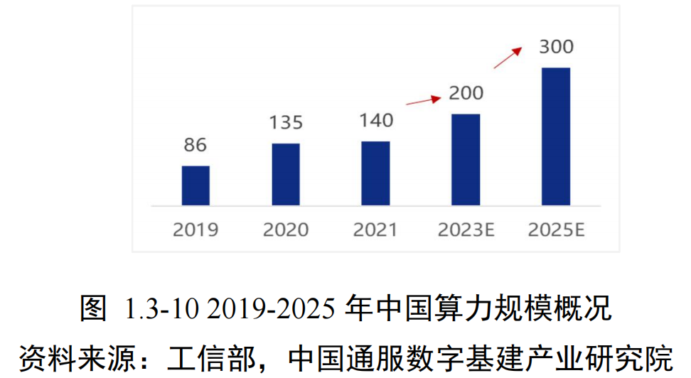 据 IDC、Gartner、中国通服数字基建产业研究院等多方机构测算,2020 年我国算力总规模达到 135EFlops,全球占比约为 31%,同比增长 55%,进一步缩小与美国等发达国家差距。其中,基础算力规模(FP32)达到 77EFlops,全球同类占比约为 26%,美国占比 43%;智能算力规模(换算为 FP32)达到 20EFlops,全球同类占比约为 19%,美国占比 52%,中美差距较大;超算算力规模(换算为 FP32)约为 2EFlops,全球同类占比约为 20%,美国占比 31%。